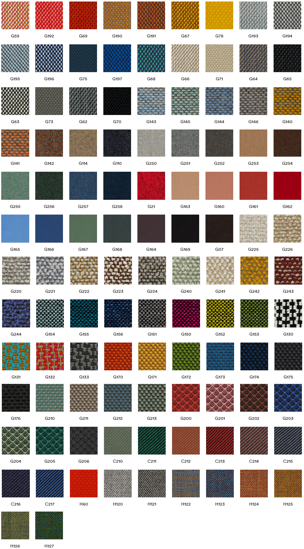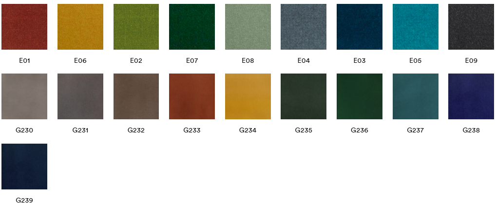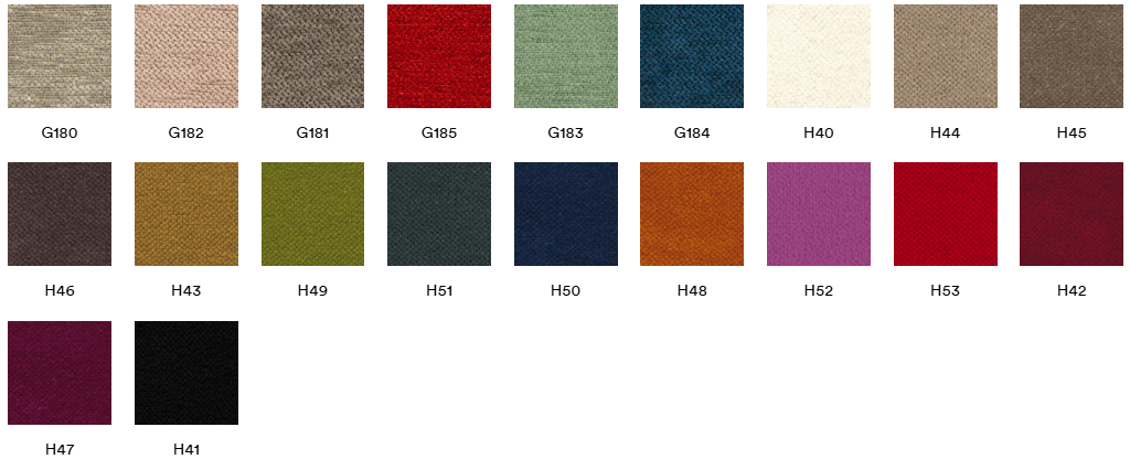 Tapicerowane siedzisko krzesło dostępne jest w poniższych wariantach tkanin: