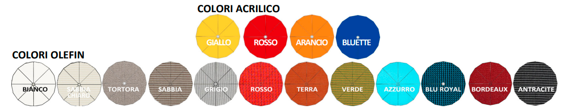 Dostępność różnych wariantów kolorystycznych poszycia pozwala na idealne dopasowanie parasola do stylu otoczenia.
