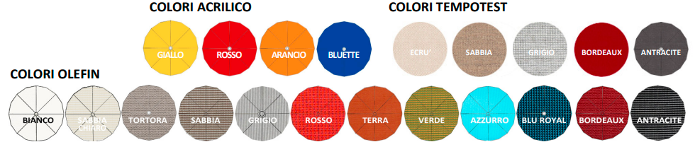 Poszycie parasole dostępne jest w poniższych wariantach tkanin.